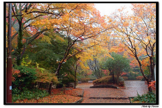 秋天的時候,光是人行道上的楓葉就是很美的景色了。
