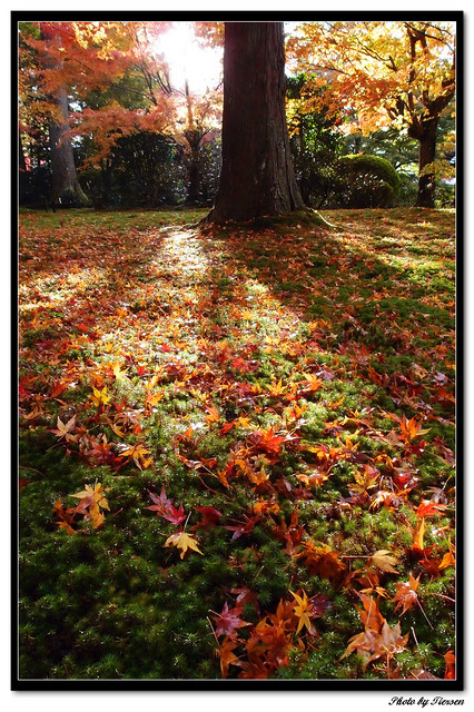 因為京都的寺廟庭園大多都是木地板,娃娃車不方便進入,所以我就沒有帶阿咩進去了。